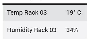 The environmental monitoring appliance displays the values measured by the attached probes, e.g. temperature, humidity, airflow, status of dry contact, door open/close, motion detector and other sensors.