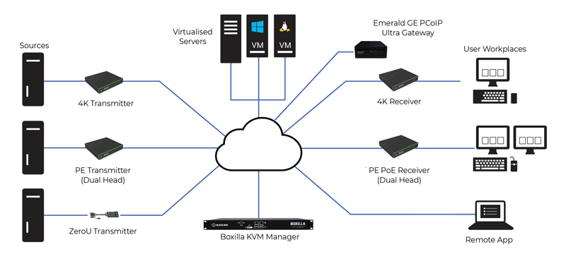 Philadelphia Eagles Use Black Box Emerald KVM for Flexible, User-Friendly Virtual Access to Production SystemsTHE CHALLENGEJust prior to the pandemic, the NFL's Philadelphia Eagles moved forward with replacement of an aging KVM (keyboard, video, mouse) system supporting game-day production systems at their home stadium, Lincoln Financial Field, and TV studios and a control room at NovaCare Complex, home to the Eagles' training facilities. The challenge for Philadelphia Eagles Senior Broadcast and Media Engineer David Sullivan was to find and implement a new KVM solution that would allow for virtual machine access and flexible remote desktop access while ensuring continued performance and ease of use for engineers, creatives, and others working across all Eagles facilities and production systems. "More and more of the systems supporting our business and engineering tasks are becoming virtualized," explains Sullivan. "Virtualization is great from an engineering standpoint; you get high redundancy, resiliency, and failover. But on the user side, you give up tactile control. Obviously, in production, that's not great. Software receivers will only get you so far because you still need to run the software receiver on a computer. The problem we ran into as we grew more into virtualization was that we had a gap between user access and ease of use. We didn't want the engineer to be the only person who could get to those systems, and we didn't want to give up the user experience where the remote system acts just like a regular physical server. That was a tough ask." In YEAR 2019, when Sullivan began evaluating possible solutions, few vendors offered products capable of supporting virtualization. So, Sullivan faced the additional challenge of finding a proven solution that would deploy easily and perform reliably and as advertised in enabling access to virtual machines. THE SOLUTIONSullivan evaluated and then deployed Black Box Emerald SE and PE KVM-over-IP systems, along with the company's Boxilla KVM manager, to support signal transport for everything in the Philadelphia Eagles' television production world. "We were keeping an eye on the market for a new KVM system that could meet our requirements, and Black Box has been a well-known name in the tech industry for a long time," says Sullivan. "And we knew that a PBS Emerald KVM install in Virginia had gone well. Sullivan started out with the Emerald SE, putting 20 transmitters and 20 receivers on the Eagles network to make sure traffic and performance matched up with his expectations. "Of the products out there, Emerald checked all the boxes," says Sullivan. "It's standards-based, so there's no proprietary network switching. There's no proprietary central processing. The network traffic is actually friendlier than a lot of the others. It's TCP unicast by default, which is awesome. It's easy to traverse on our giant enterprise network. And in addition to all of those things, the price is attractive. I didn't even quote out another product. I got the Black Box quote, and we were like, 'Let's do it.'" Emerald KVM over IP - Connectivity Scheme